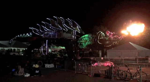 In 2016, Teddy collaborated with artist Henry Chang at the Mirage Garage in Las Vegas for GKR 2.0 and all of the LED lighting, mechanical and pyrotechnic aspects have been upgraded for a more dramatic and evolutionary appearance for the art piece. It is now a 60 feet long, 11.5 feet wide and 22.5 feet tall artistic sculpture set on top of a 87’ Chevy Silverado chassis with full digital pyro-system and interactive lighting control on 2,460 feet of linear RGB LED and LED wall-washer units. GKR boasts two levels of climbing space with seating for more than 20 people in the DJ booth cage upstairs with a party couch on its back where riders can move its tail back and forth manually. In addition, the dragon also equipped with interactive flame.